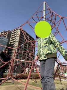 クリスマスマーケットを楽しんだ後は、広場横の遊具で遊んでから帰ってきています♪