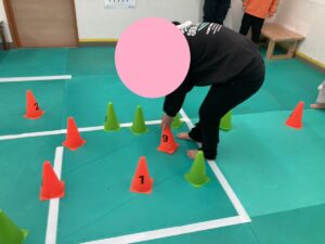 全身を使って! こどもプラス長野石渡教室 2026.01.09 今日の運動あそびはマットやコーンを使った全身運動! マットの運動では、テープが張られた部分を ジグザグで進みます! ジャンプがちょっぴり苦手なお友達も マットのバネを利用して、たくさんジャンプ出来ました★ ボール探しでは、 「どこにボールがあるかなぁ?」と一つ一つコーンを確認して 探していたお友達! ボールを見つけると、嬉しそうに拾っていました! 今週はお正月明けですが、少しずついつものリズムを取り戻してきています♪