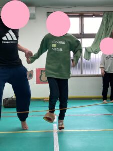 ロープの高さを高くしたり、片足立ちで挑戦したお友達もいました👏