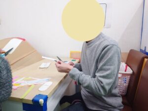 製作活動 こどもプラス長野石渡教室 2026.03.13 本日は製作活動の様子です。 とても集中して取り組んでいます。 ハサミで折り紙を切って 輪っかを作り、 折り紙をつなげていきます。 集中力が素晴らしかったです。