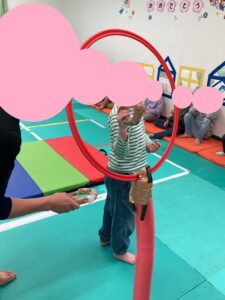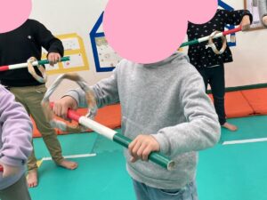 午後は、新聞紙のスティックと輪っかを使った運動遊び♪